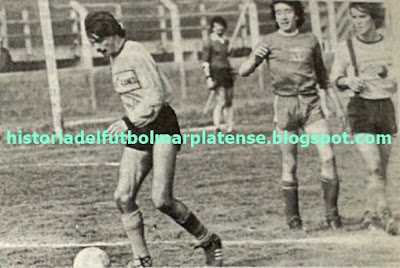 Otra imagen de ese partido en el Estadio San Martín (que terminó 4 a 1 para los de Otamendi). Remata de zurda Oscar Delarroca y no llega a tapar Luis Belvedere. Atrás Guillermo Echegaray y el "Tanque" Varzilio. |